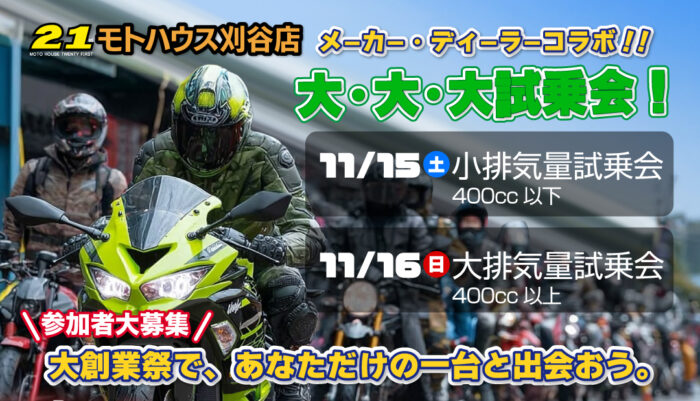 11月15日(土)・16(日)モトハウス刈谷店×コラボ 創業記念大試乗会