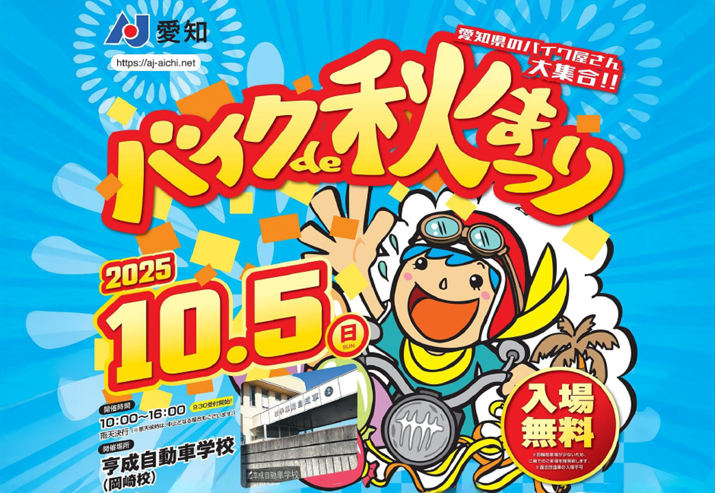 今年もバイクファン待望の「バイクde秋祭り」の季節がやってきました! 愛知県内のバイクシ...